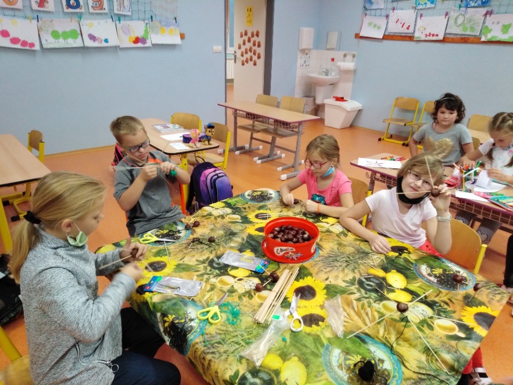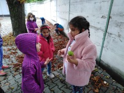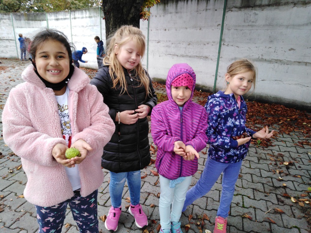 Na vycházce směrem k vlakovému nádraží jsme si nasbírali kaštany na tvoření.