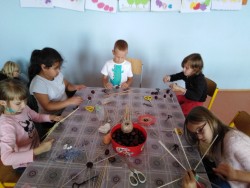 pod dohledem. Také jsme procvičovali jemnou motoriku, když jsme obmotávali