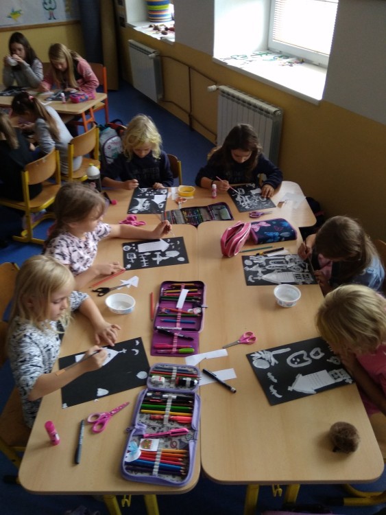 14. 10. 2022 2.oddělení - práce na kalendáři, podzimní měsíce. Výzdoba na okno - halloween. 14 / 10 / 2022 KV