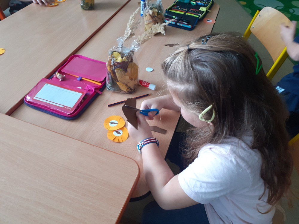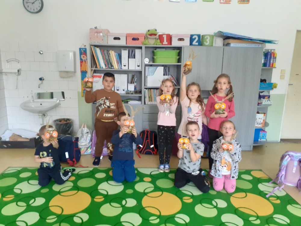 19. 10. 2022 Z listů a celofánových sáčků jsme tvořili sovičky, které nám teď zdobí třídu. J. Myslíková 19 / 10 / 2022 BJ