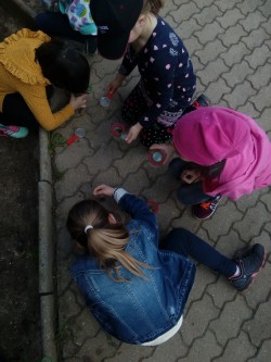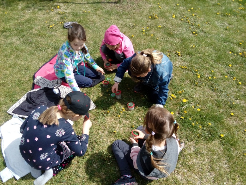 Pozorujeme mravence na školním hřišti, hrajeme hry.