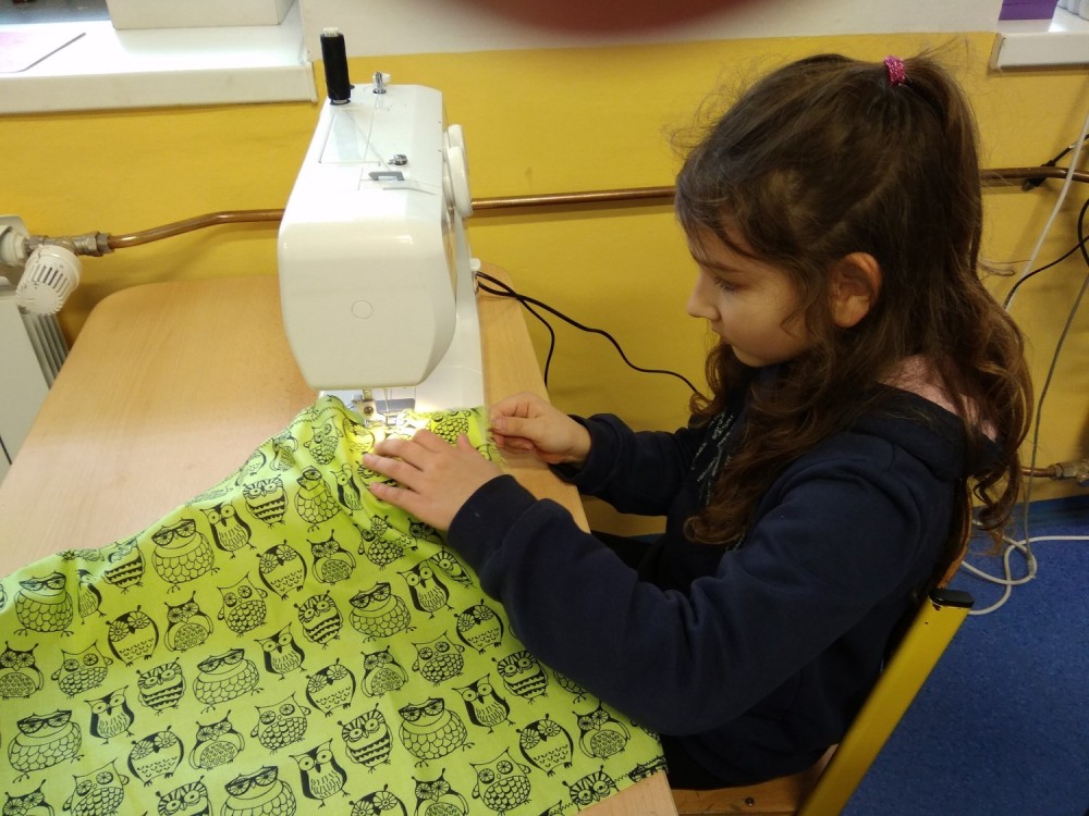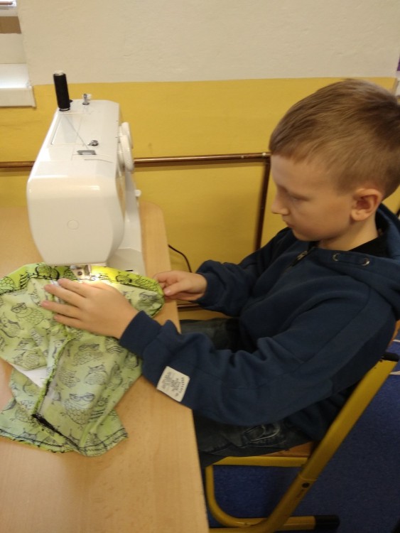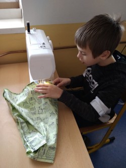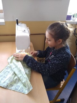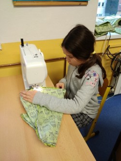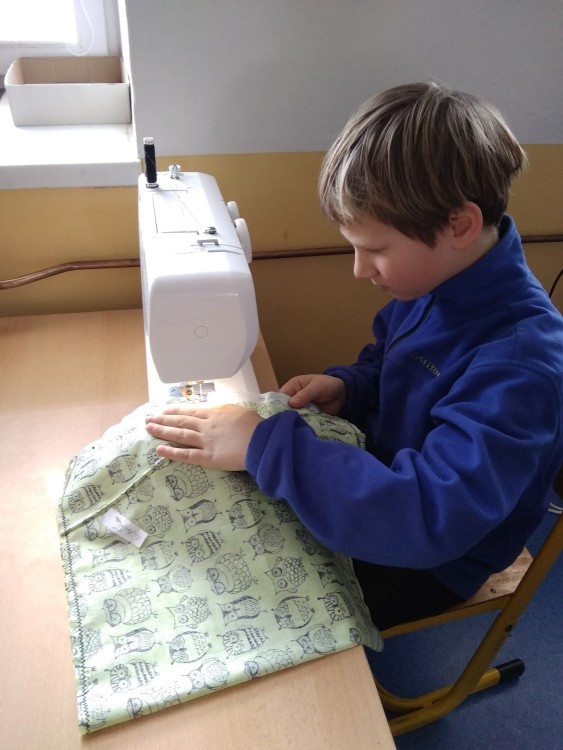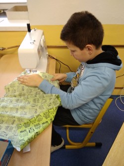 Šití pytlíku na papuče 2.oddělení ŠD.