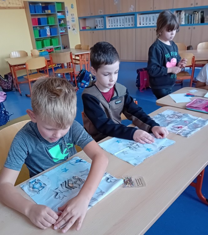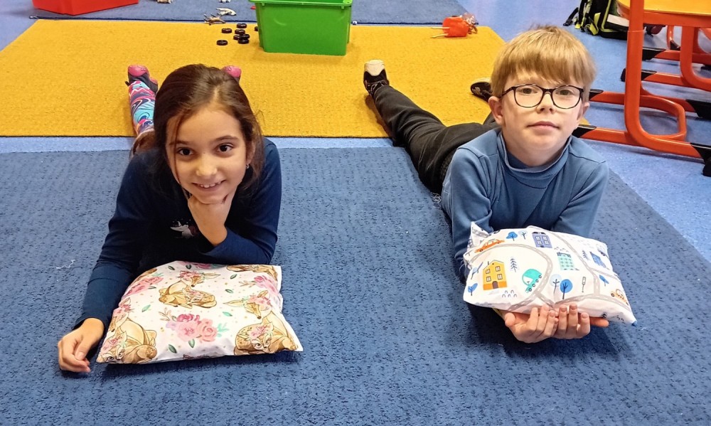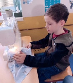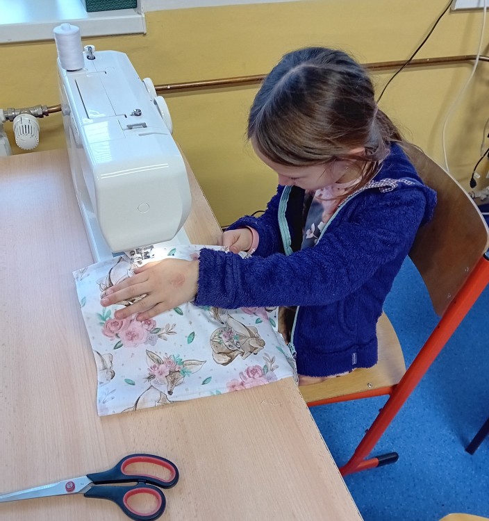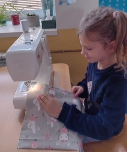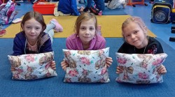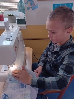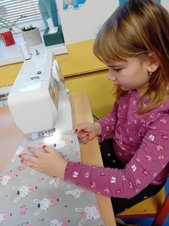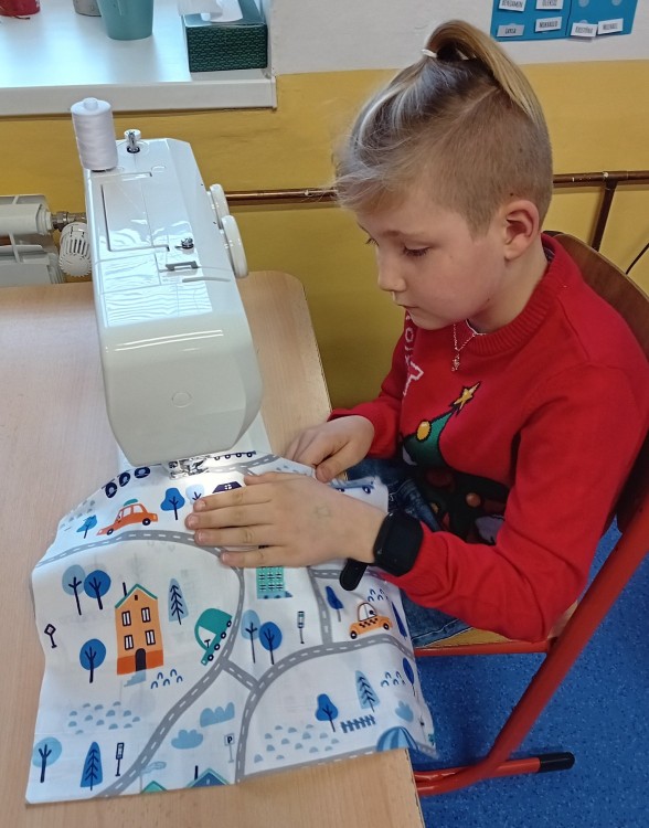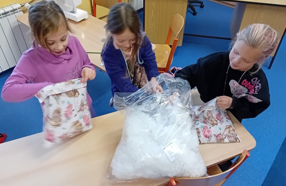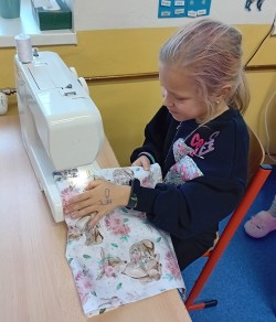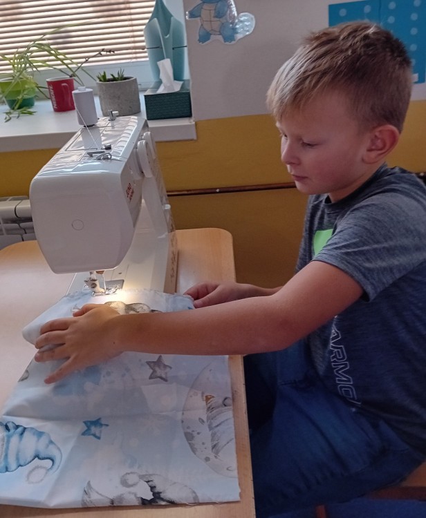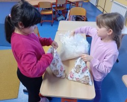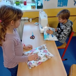 5. 1. 2024 2. oddělení - šijeme polštářky, náplň je vhodná pro alergiky - zakoupeno v textilu u paní Havlátové. 7 / 1 / 2024 KV