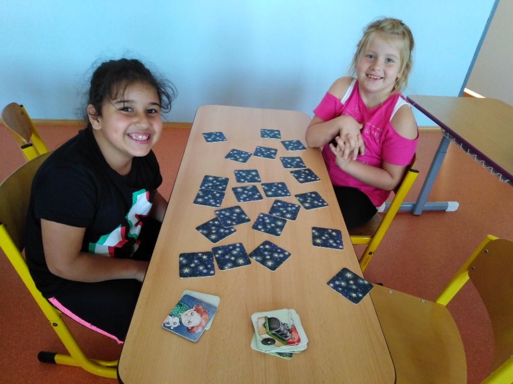 hrajeme pexeso, šachy, Uno, Cink a stavíme si z kostek, Lega a Sevy. Venku sportujeme,