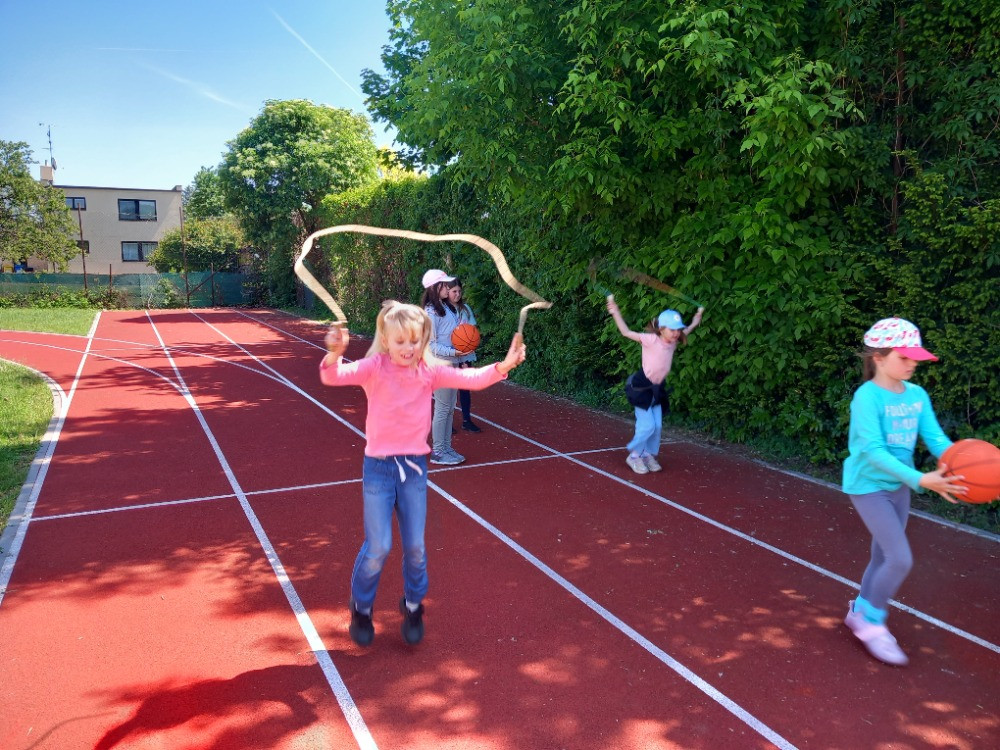 K naší velké radosti se nám vrátilo slunečné počasí. A tak si pravidelně chodíme zasportovat na naše oblíbené hřiště u budovy Benešova, zahrát si malou kopanou, na honěnou Zombie, učit se skákat přes švihadlo a driblovat basketbalovým míčem. Sport nás moc baví a jsme rádi, že tu můžeme být :-)