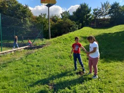 které je zatím zavřené. Alespoň jsme si vyzkoušeli hod na koš, pohráli si na kopci a proběhli jsme se.