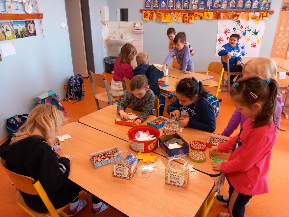 17. 1. 2024 I v mrazivém počasí rádi chodíme ven a sportujeme na hřišti Benešova. Pustili jsme se do tvoření barevných podložek ze zažehlovacích korálků a procvičujeme tak jemnou motoriku. 17 / 1 / 2024 BJ