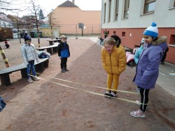 25. 3. 2022 Učíme se skákat přes gumu, házet a chytat ringo kroužky. Stavíme skrýše pro skřítky na Plácku. Hrajeme si na honěnou a kreslíme si na hřišti Fino. 25 / 3 / 2022 BJ