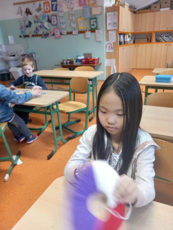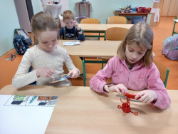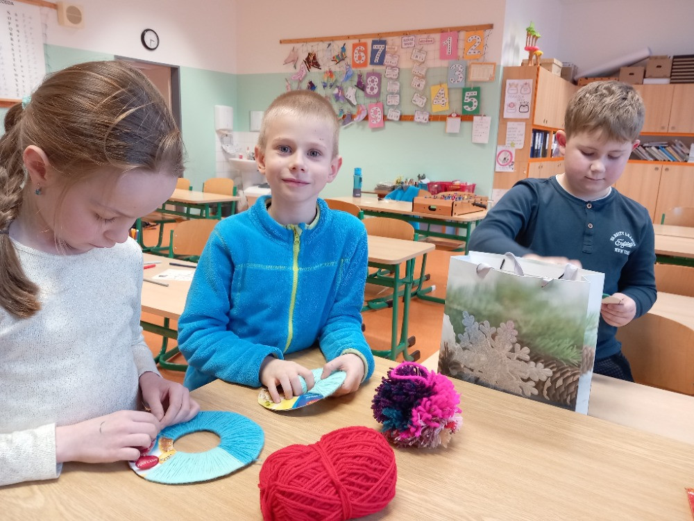 22. 1. 2026 Namotáváme vlnu na kulatou šablonu, učíme se vázat uzlíky a procvičujeme tak jemnou motoriku. Pomáháme si a máme radost, že jsme se naučili něco nového. 22 / 1 / 2026 BJ