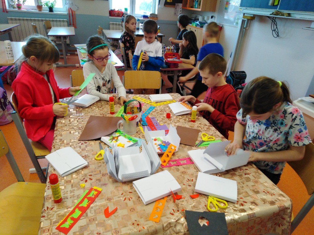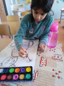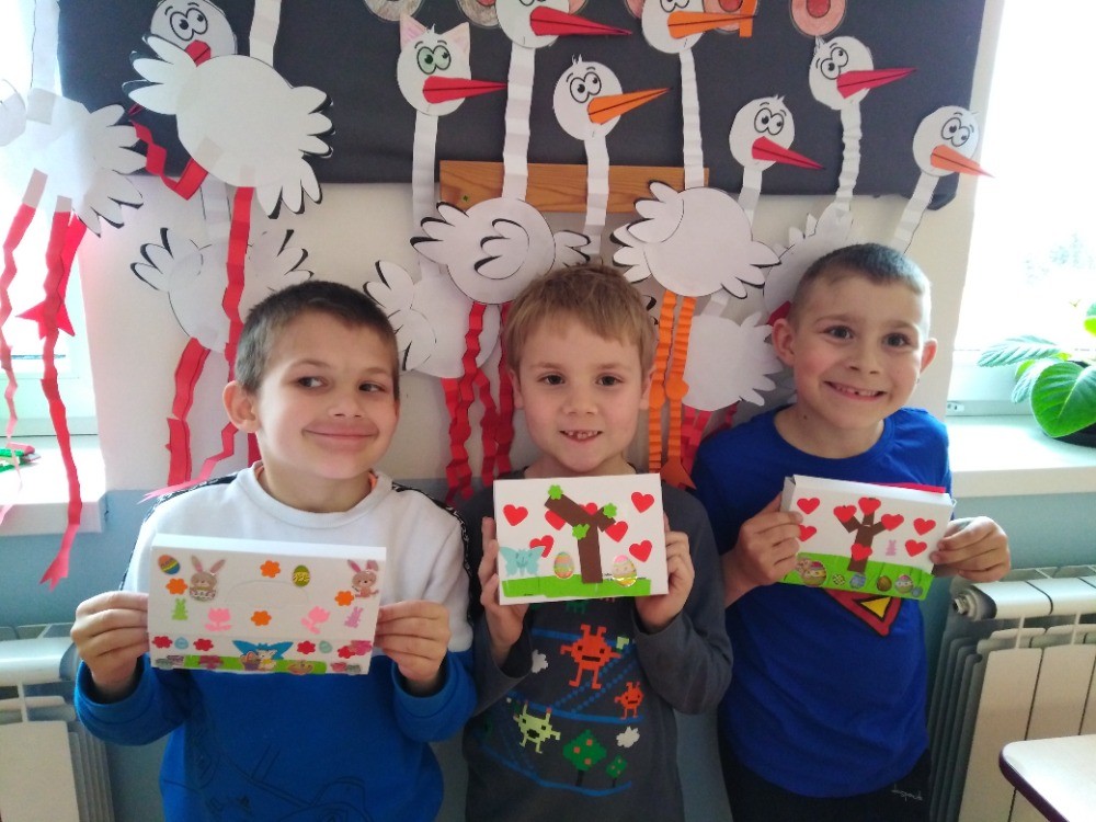 i obrázky. Také jsme si zdobili různými vzory z barevného papíru bílé obálky