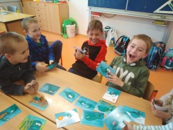 poprat o míč, o první ránu ;-) Nadále pokračujeme v šití krabiček z pohlednic,