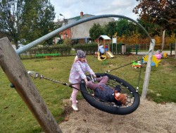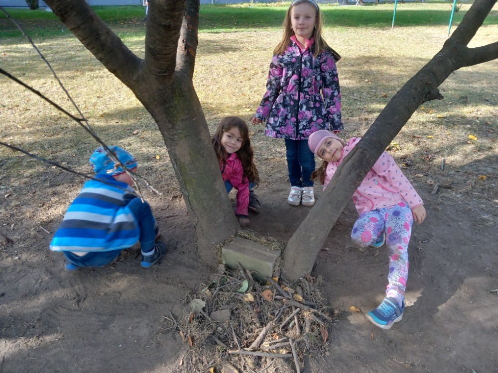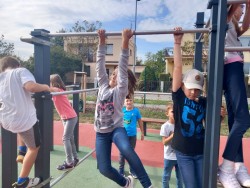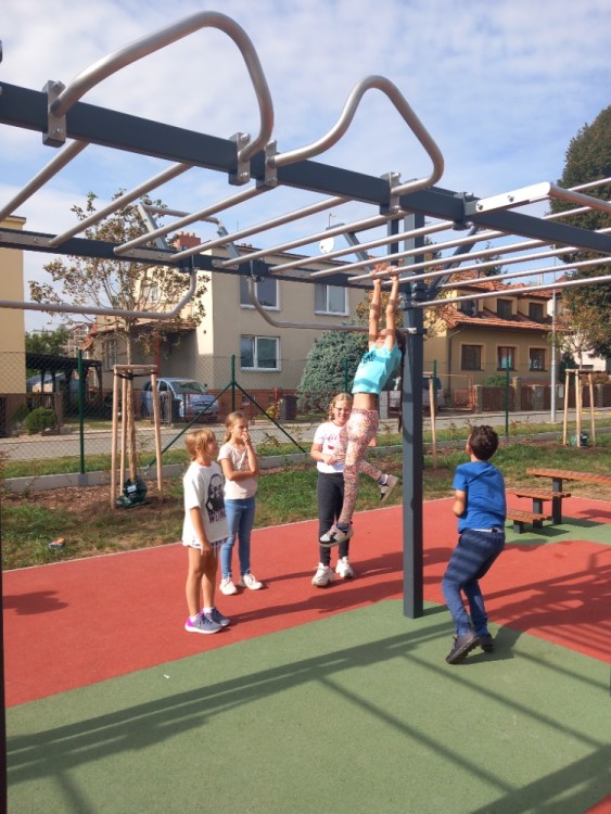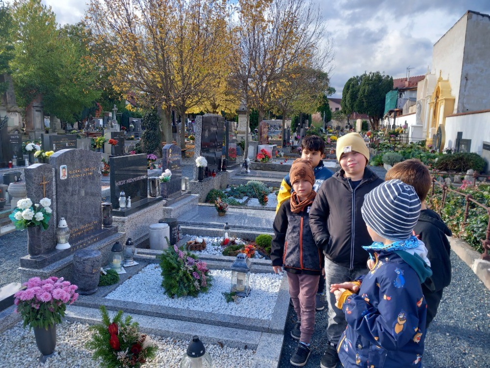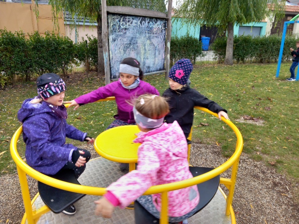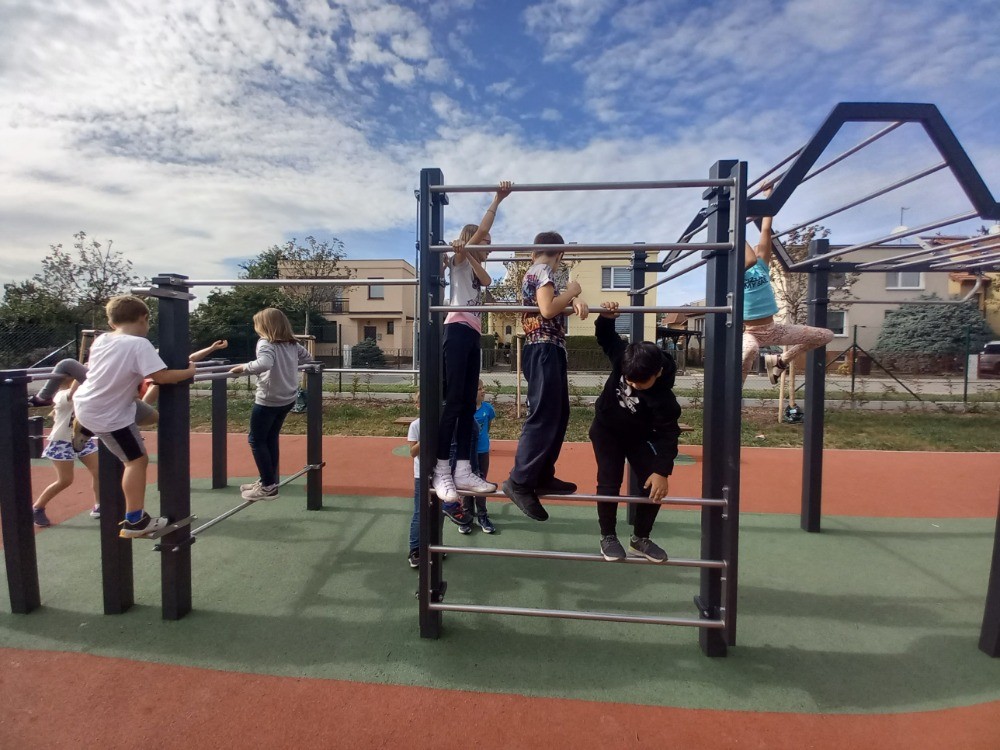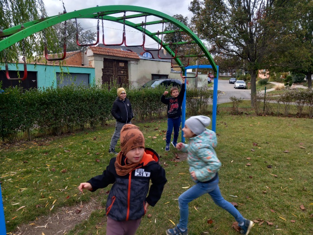 Rádi sportujeme, hrajeme si na Plácku nebo se proběhneme u bývalého Fina, a chodíme na zdravotní procházky městem i v méně příznivém počasí. V říjnu jsme navštívili nové workoutové hřiště s posilovacími stroji, které jsou určeny pro osoby měřící 140 cm a výše. Děti sem mohou chodit bez doprovodu už od 6 let. Přečetli jsme si pravidla používání strojů, zkusili jsme si přeručkovat po hrazdách, vyšplhat na tyči, posilovali jsme podle návodů. Posledního října, na svátek Halloweenu, nám počasí nepřálo, ale prošli jsme se Modřicemi, podívali se, kde se nachází městský úřad, služebna Městské policie, zopakovali si čísla tísňových linek a obdivovali jsme lampióny v papírnictví. Druhého listopadu jsme si na místním hřbitově připomněli Památku zesnulých.
