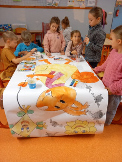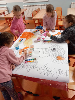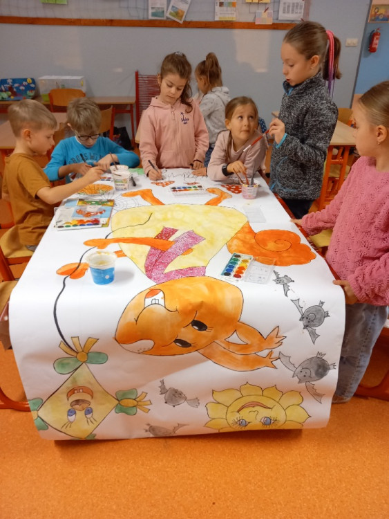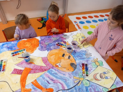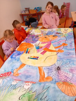 1. 11. 2024 Jako podzimní téma na venkovní plakát jsme zvolili veverku, kterou lze běžně vidět v parcích. Pracovali jsme opět s anilínovými barvami. A tentokrát hlavně v ranní družině. 1 / 11 / 2024 BJ