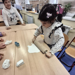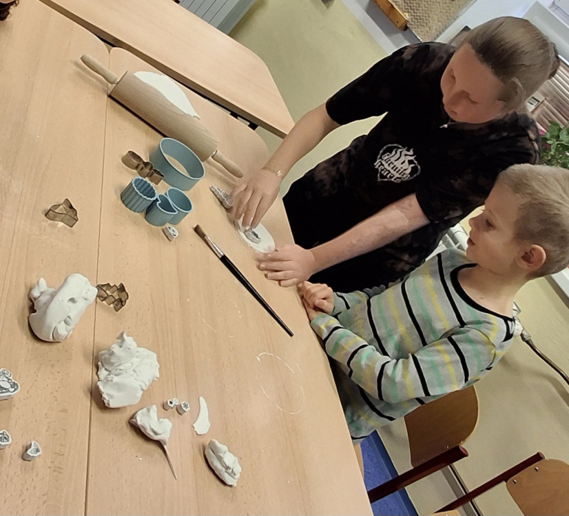 Společně jsme vyráběli závěsnou dekoraci ze samotvrdnoucí hmoty. Vykrajovali jsme různé tvary, které jsme poté ozdobili dekorativní stuhou. Také jsme navštívili Pasivní dům seniorů, kde nám milá babička Helenka, četla pohádku "O chytré princezně". Moc děkujeme babičko!🙂. A nesmí chybět ani pohyb, který potřebujeme. Šikovná studentka, sl.Katka Goliášová si pro nás připravila pro rozhýbání celého těla zajímavé psychomotorické hry doprovázené hudbou, které nás moc bavily🙂.