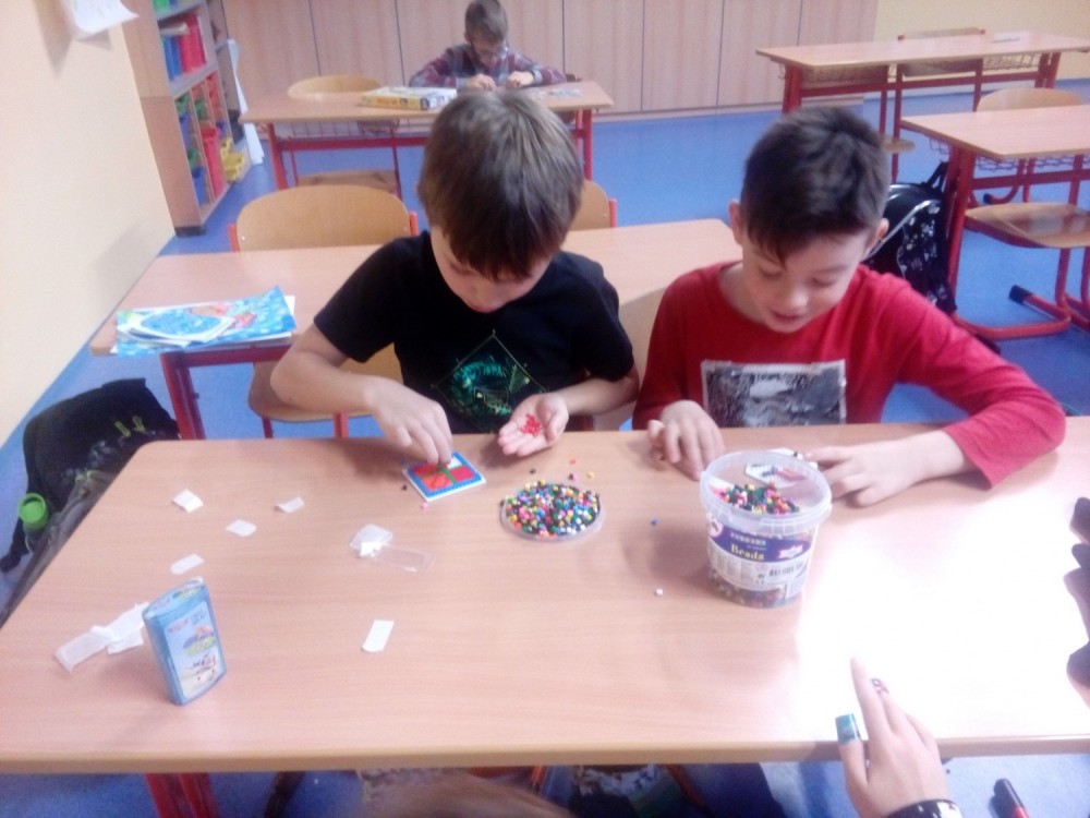 V ŠD 2.oddělení zažehlujeme korálky a tvoříme obrázky z voskovky.