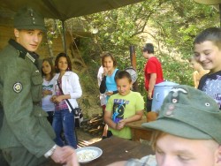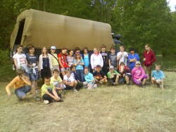 V pátek 25.května se zúčastnili žáci z 5.,6. a 8. třídy přehlídky vojenské techniky z doby 2.světové války. Žákům byl objasněn postup vojsk v různých bitvách jak na straně sovětských vojsk, tak i taktika bojů německých vojsk. Přitom si žáci sami mohli vyzkoušet střílení z pušek i samopalů, shlédli i polní kuchyni, kde jim bylo nabídnuto jídlo z vojenského jídelníčku, prohlédli si stany, ve kterých vojáci tábořili, vojenský nákladní vůz,dělo i vytvořené zákopy a bunkry. O tom, jak se jim vojenský tábor líbil, ukazují následující fotografie.