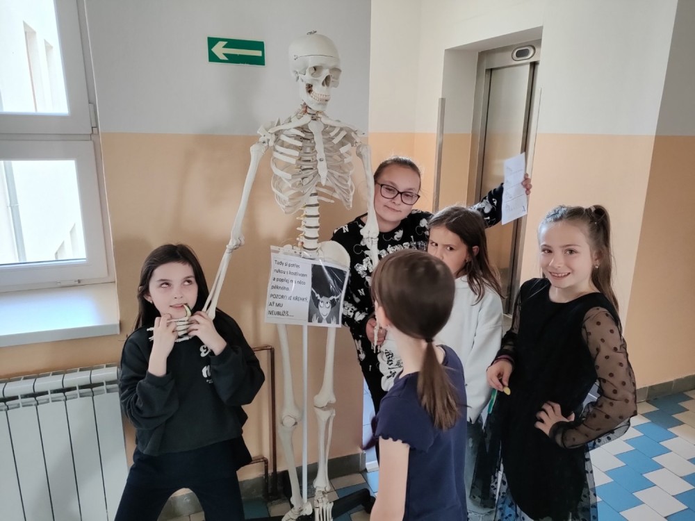 Pátek před čarodějnicemi jsme dětem na budově Komenského zpříjemnili šifrou zaklínadel, která musely rozluštit. Splnily i několik čarodějných úkolů a do školy se nebylo jednoduché vůbec dostat! Všichni školáci jsou vybaveni zaklínadly, tak je potřeba si na ně o filipojakubské noci dávat pozor, ať je nenaštvete! Jinak by se někdo mohl probudit jako kočka, netopýr, myš nebo žába :-).
