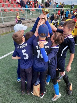Ve čtvrtek 11. 5. proběhlo na TCM v Brně krajské finále všech kategorií McDonald´s cupu. Kluci z naší školy se díky 1. místu v kategorii B (4. a 5. třídy) v okrese Brno-venkov probojovali až do tohoto finále. Finále se zúčastnili výherci okresních kol z celého Jihomoravského kraje. Ve velké konkurenci jsme vyhráli skupinu A se ziskem 7 bodů, když jsme 2x vyhráli a jednou remizovali. V semifinále jsme narazili na školu z Břeclavi, kterou jsme porazili 4:2. Ve finále nás čekal těžký soupeř z Dubňan. Finálový zápas byl velmi vyrovnaný a v normální hrací době skončil remízou 1:1. Následovaly pokutové kopy, které jsme bohužel prohráli 5:4. Konečné 2. místo je však velký úspěch a kluci si zaslouží velkou pochvalu za předvedené výkony a výbornou reprezentaci školy i okresu Brno-venkov. Poděkování patří i rodičům za podporu při zápasech.