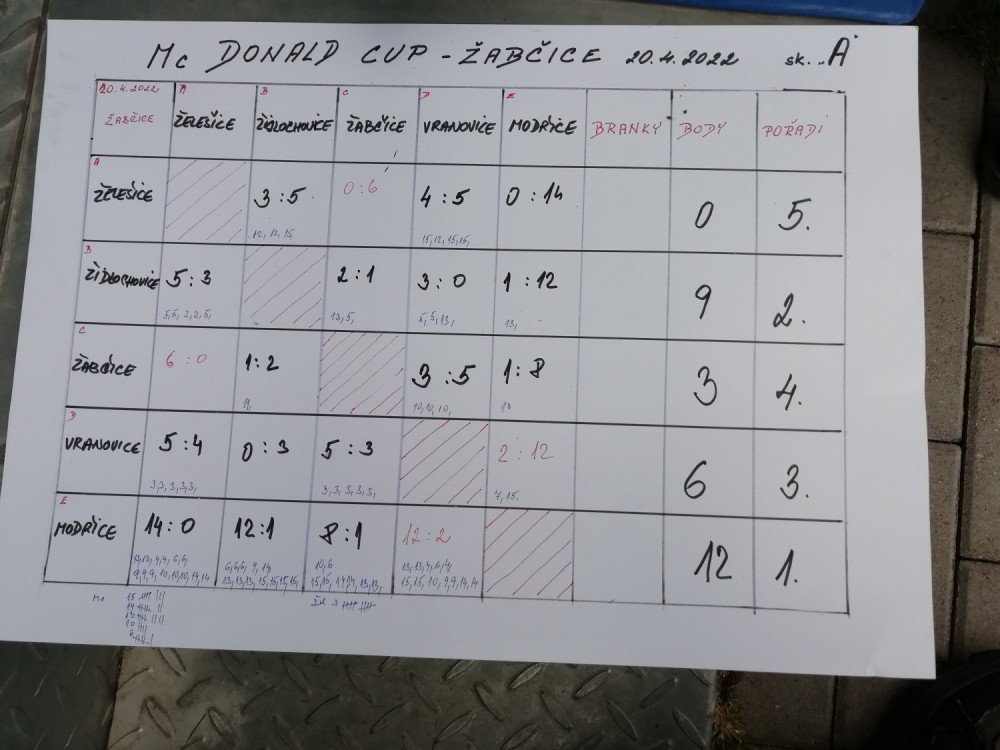 Ve středu 20.4. se vybraní žáci z druhých a třetích tříd účastnili okrskového kola fotbalového turnaje McDonald´s cup v Žabčicích. Počasí nám velmi přálo a kluci nastříleli spoustu gólů. Všechny zápasy nakonec zvládli na výbornou a ostatní školy porazili. Celý turnaj ovládli bez zaváhání a 3.5. budou hrát okresní finále v Modřicích.