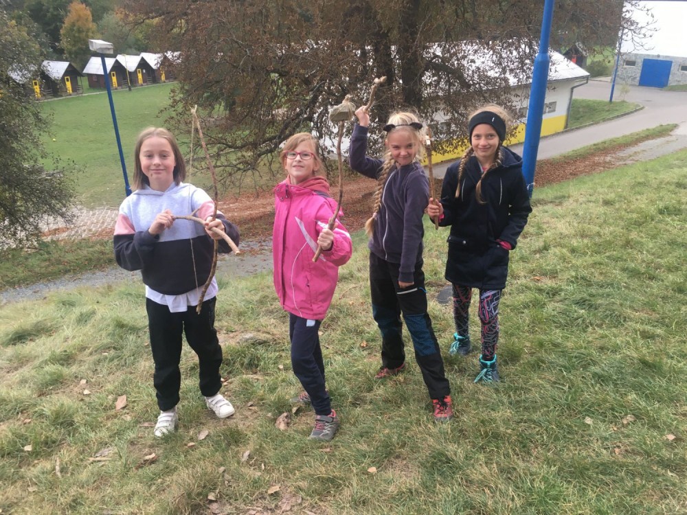 Odpoledne jsme poté skládali zprávu a následně vyráběli nástroje pro zajištění obživy tlupy. Vzhledem k tomu, že se nacházíme v době Lovců mamutů, byly možnosti co se materiálu týče dosti omezené, ale i tak se nám podařilo vytvořit širokou paletu nejrůznějších pomůcek.