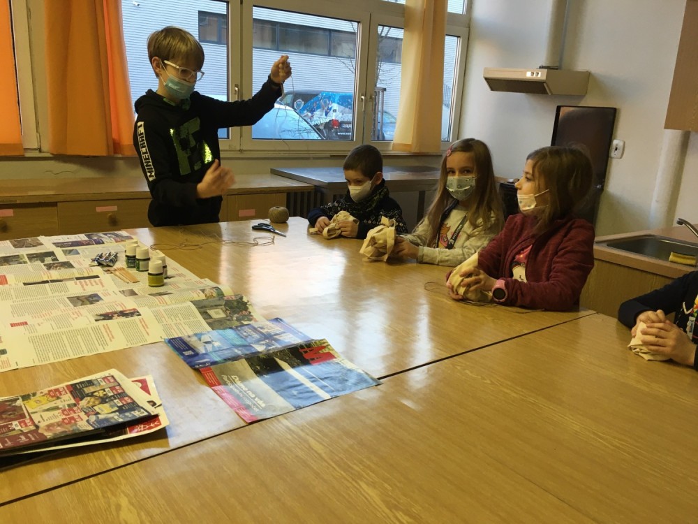 Školní parlament před časem pořádal soutěž kostýmů na Halloween a výhercům slíbil účast na kouzelných vánočních dílnách. Parlament svůj slib dodržel a v pondělí před Vánoci se společně s výherci pustili do tvoření. Díky pomoci členů školního parlamentu a podpoře ze strany SRPŠ, které zajistilo materiál, se žáci mohli pustit do náročnějšího tvoření než je v rámci třídy možné. Každý žák si vytvořil svoji originálně nabarvenou nákupní tašku a vánoční svícen. Dětem se společná práce se staršími spolužáky moc líbila.
