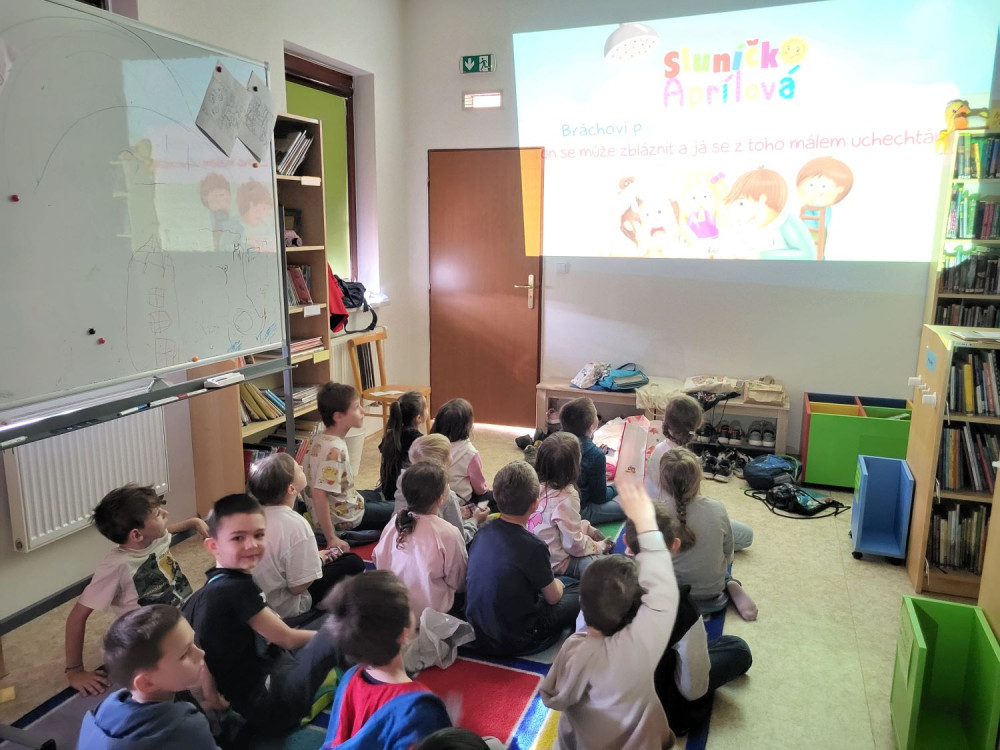 Součástí programu bylo také poslechové čtení ukázek z dětských knih, které se věnují aprílu, humoru a různým žertům. Některé děti se do besedy aktivně zapojily a vzpomněly si, jak samy připravily drobné žertíky pro své sourozence, rodiče nebo kamarády. Žáci následně diskutovali o tom, zda a jak se s aprílovými žerty setkali ve škole i doma. Všichni potvrdili, že 1. dubna už někdy někoho lehce a s humorem „aprílově zmátli“. Některé žertíky proběhly také přímo ve třídě – tam už se však nikdo „nenachytal“.
