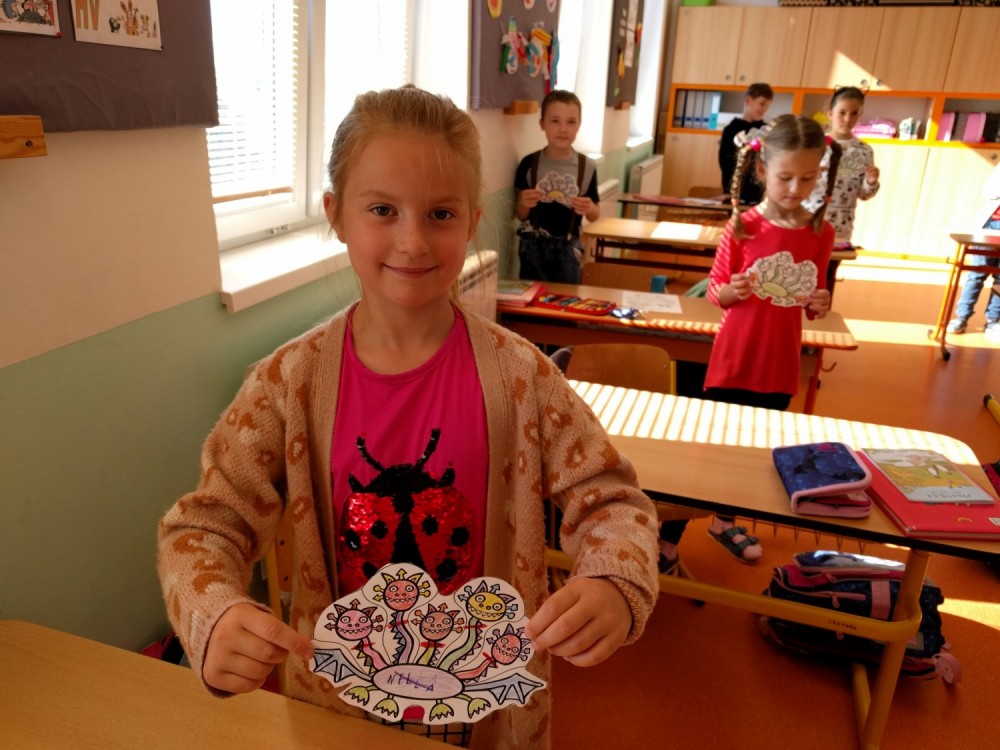 Plníme stejné úkoly z českého jazyka,matematiky i prvouky jako naši spolužáci doma, ale  stíháme i něco navíc. Celý minulý týden jsme bojovali s drakem Koronem.Připomínali jsme si pravidla, kterými se musíme řídit, abychom nad zlým drakem zvítězili.