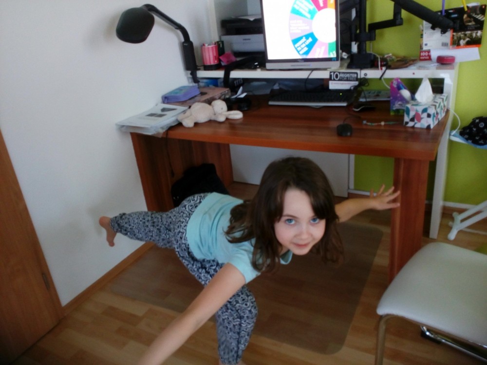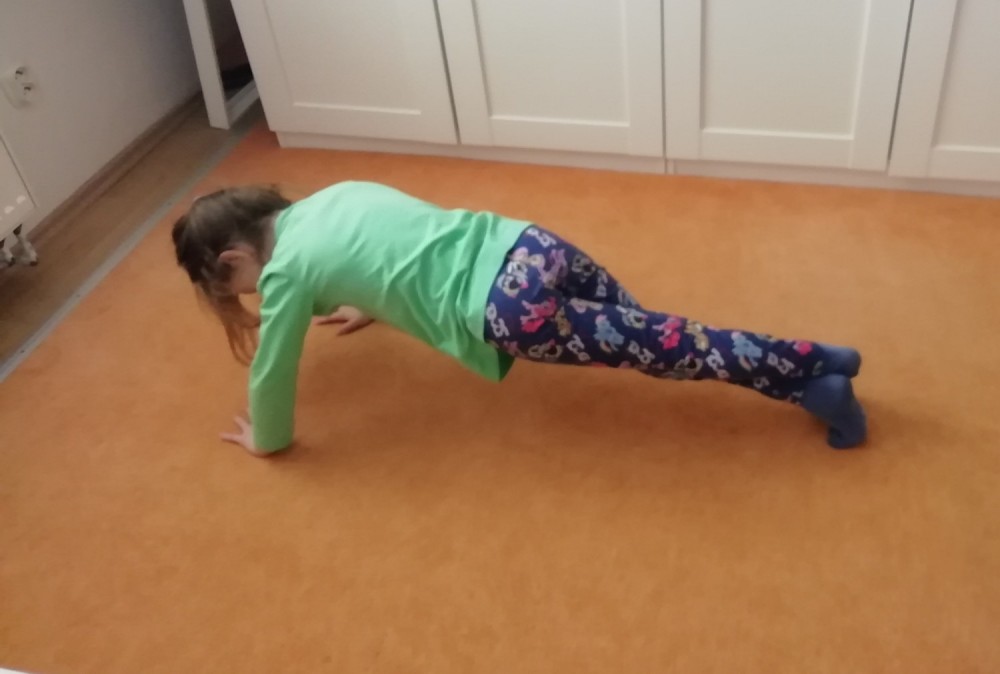 V distanční výuce doma nezahálíme. Teď je třeba se hýbat snad ještě víc než když jsme mohli chodit do školy. Roztočili jsem si "Kolo štěstí", správně přečetli instrukce a zacvičili správně cvik. Jak se nám to daří můžete zhlédnout na přiložených fotografiích :-).