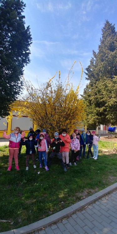 Protože máme dlouhodobou výzvu do Tv, vydali jsme se opět na procházku do okolí školy. Po cestě jsme pozorovali, jak se na jaře mění příroda - první jarní květiny už odkvétají, začínají se objevovat další, předzahrádky hrají všemi barvami. Jírovec už se zelená a jsou na něm vidět první květy. Zlatice už pomalu odkvétá - ještě chvíli si můžeme vychutnávat pohled na krásné zlaté koule, než se nám promění v zelené keře...
