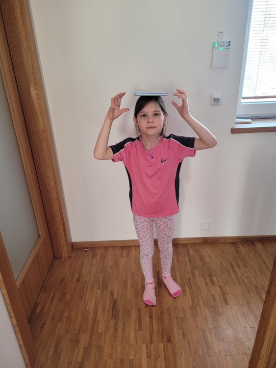 V tělesné výchově jsme dostali úkol zacvičit sestavu s knihou na hlavě, aniž by kniha spadla. Jak se nám dařilo, můžete zhlédnou na přiložených fotografiích :-).