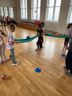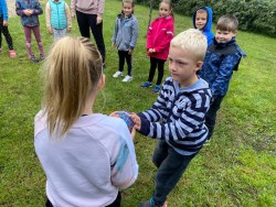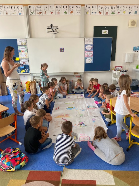 Naším prvním dobrodružstvím a výzvou bylo poznat své spolužáky, paní učitelku a prostory školy. Proto k nám zavítaly lektorky Střediska volného času Ivančice a také školní psycholožka Mgr. Jeanette Vrtková. S jejich pomocí jsme se zábavnou formou učili jména nových kamarádů, poznávali jsme jejich koníčky a zájmy, učili jsme se také, jak si pomáhat, podporovat se a spolupracovat.