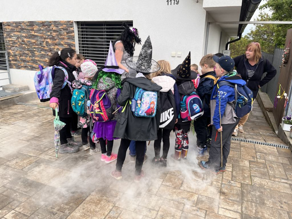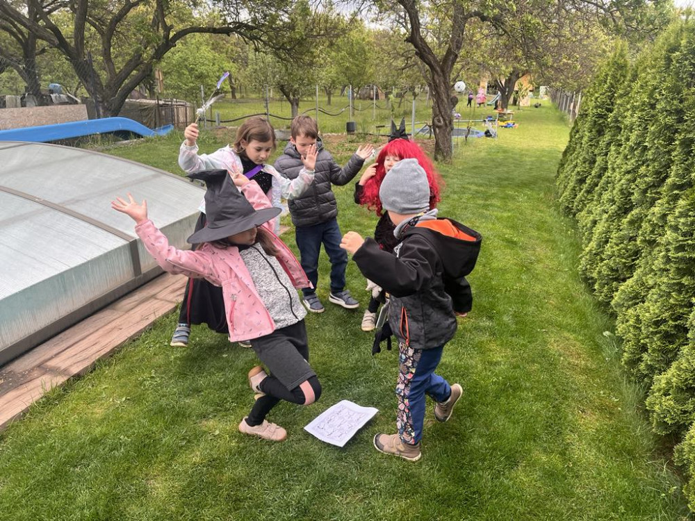 Na čarodky jsme se vypravili na čarodějnou stezku, kde jsme plnili rozmanité úkoly. Běhali jsme v sedmimílových botách, vařili čarodějný lektvar, prošli jsme pavučinou,... Počasí nám sice moc nepřálo, do školy jsme se vrátili za deště, ale den jsme si parádně užili. Děkujeme mamince Terezky, že pro nás tuto akci celou připravila!