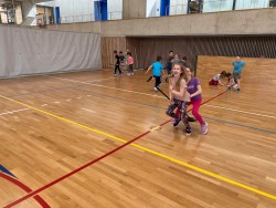 Dnešní tělesná výchova 1.A  byla doslova čarovná. Děti se totiž proměnily na malé čaroděje a čarodějky a zdolávaly nejrůznější kouzelnické disciplíny.