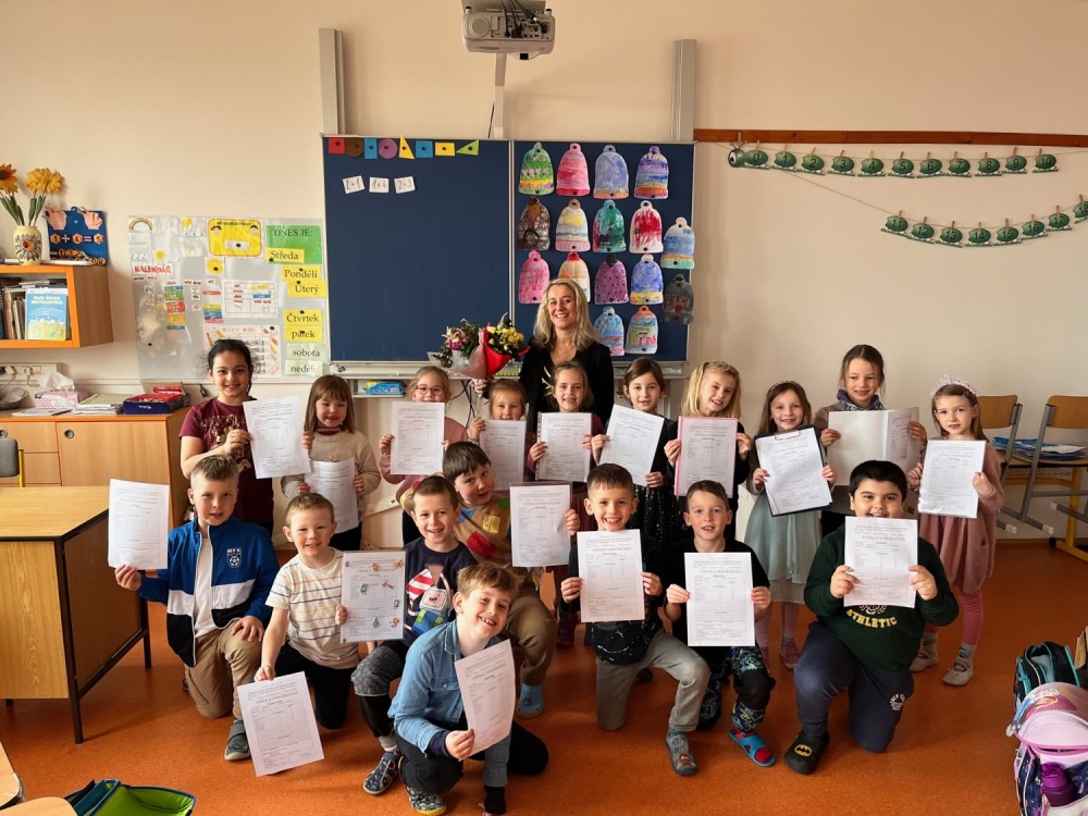 Konečně jsme se dočkali! Půl roku jsme pilně pracovali, abychom dnes byli odměněni naším prvním vysvědčením. A to si určitě zaslouží odměnu - pololetní prázdniny, na které letos hned navazují ty jarní. Tak máme možnost si oddychnout a načerpat síly na druhý půlrok naší školní docházky :-).