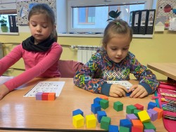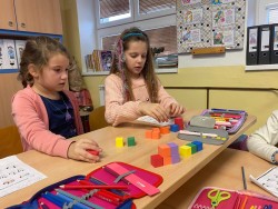 2. 3. 2023 V hodinách matematiky procvičujeme prostorovou představivost. Děti počítají krychle, staví a zakreslují stavby do plánku. 1 / 4 / 2023 MJa