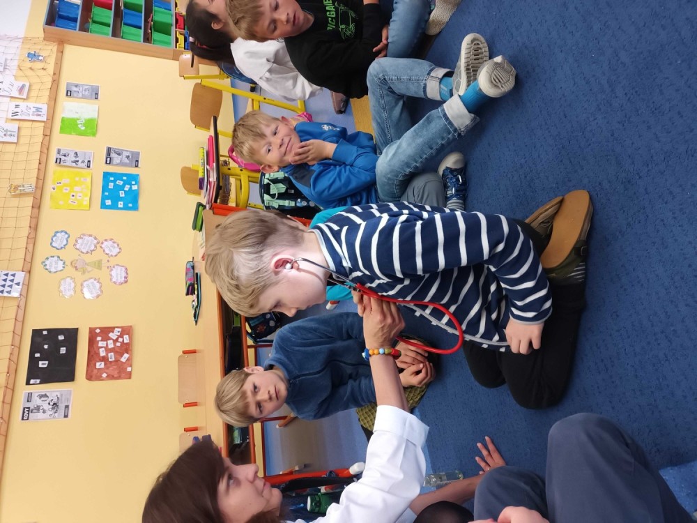 V měsíci květnu jsme se ve škole učili o povolání. Do školy jsem pozvala rodiče, kteří své povolání prezentovali. Největším zážitkem byla možnost zkusit si různé pracovní pomůcky (např. pouta, fonendoskop). Dopravní policisté přijeli v dálničním autě a ukazovali nám, jak měří rychlost u kolem jedoucích aut. Paní MUDr.Štefániková dětem donesla fonendoskopy a každý si poslechl své vlastní srdce. Poslední návštěvou byl pan Klang, který pracuje jako vědec a přiblížil nám, jak fungují letadla a co vše, jako vědec o letadlech zkoumá.