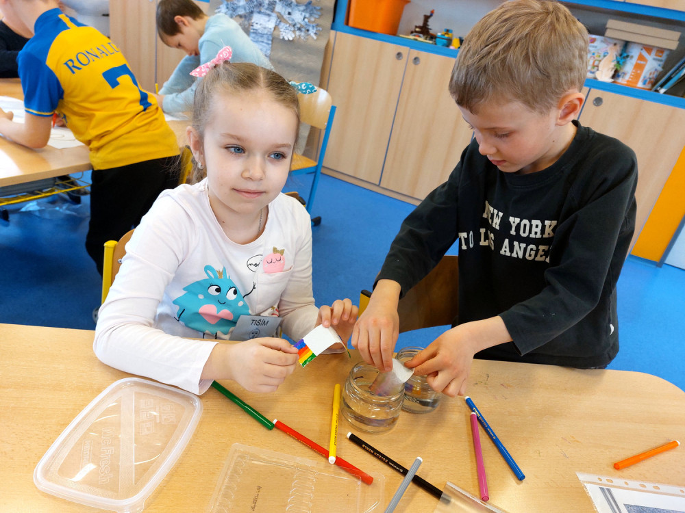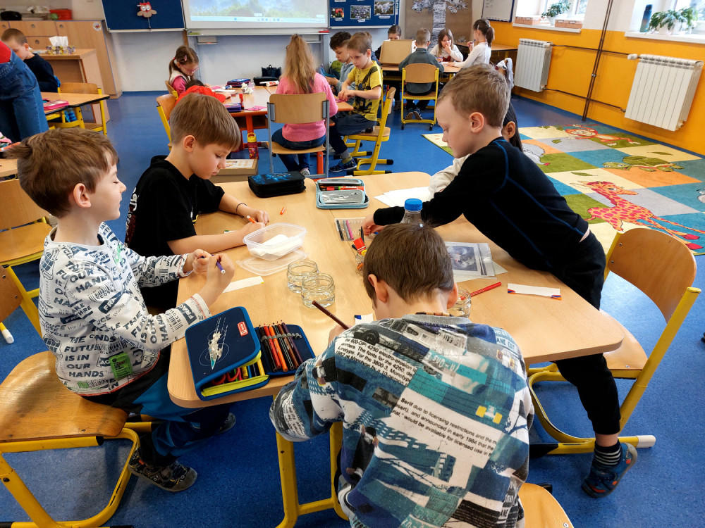 V centrech aktivit na téma JARO jsme tentokrát uvítali děti z mateřské školy. Sešlo se tu hned několik kamarádů, radost byla na obou stranách a spolupráce běžela, jak má. Děti si vzájemně pomáhaly a prožívaly uspokojení ze své práce.