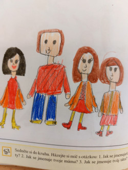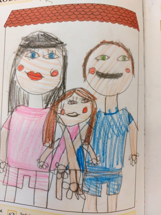 Docela jsme si to užili. Hráli jsme situační scénky, dramatizovali rozhovory, někdy jsme se i hodně nasmáli. Malovali jsme, jak to u nás doma vypadá a co kdo nejčastěji dělá - maminky pracovaly v kuchyni a tatínci sledovali televizi, jak jinak.