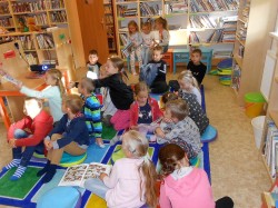 Při první návštěvě knihovny jsme se seznámili s prostředím knihovny, paní knihovnice nám vysvětlila jak si můžeme knihy vybírat a kde kterou knihu najít.Poslechli jsme si pohádku a pak jsme si půjčili knížky domů.Do knihovny půjdeme zase v listopadu.Zatím nám z vypůjčených knížek čtou rodiče, ale brzo už si budeme číst sami.