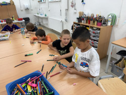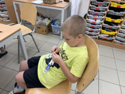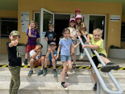 Poslední den školy v přírodě jsme si užili třemi různými stanovišti. První byla opičí dráha na čas, kde se nejlépe umístil Kevin, Mirinka a Áďa B. Druhá aktivita byla dopravní výchova, kde si děti připomněly bezpečné chování v provozu před prázdninami. Poslední tvořivá činnost na památku byla výroba záložky do knížky. Nechybělo také balení a pečlivá kontrola pokoje a zapomenutých věcí. Užili jsme si spoustu zábavy, zažili pořádnou letní bouřku a těšili se domů do svých pokojíčků :-).