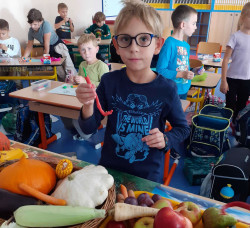20. 9. 2024 Děkujeme rodičům za praktické pomůcky do vyučování. Díky nim jsme mohli poznávat podzimní druhy zeleniny a ovoce, modelovat a porovnávat s originálem, jak se nám naše výtvory povedly. 22 / 9 / 2024 HP