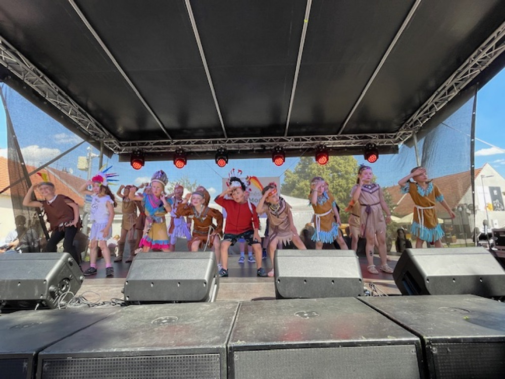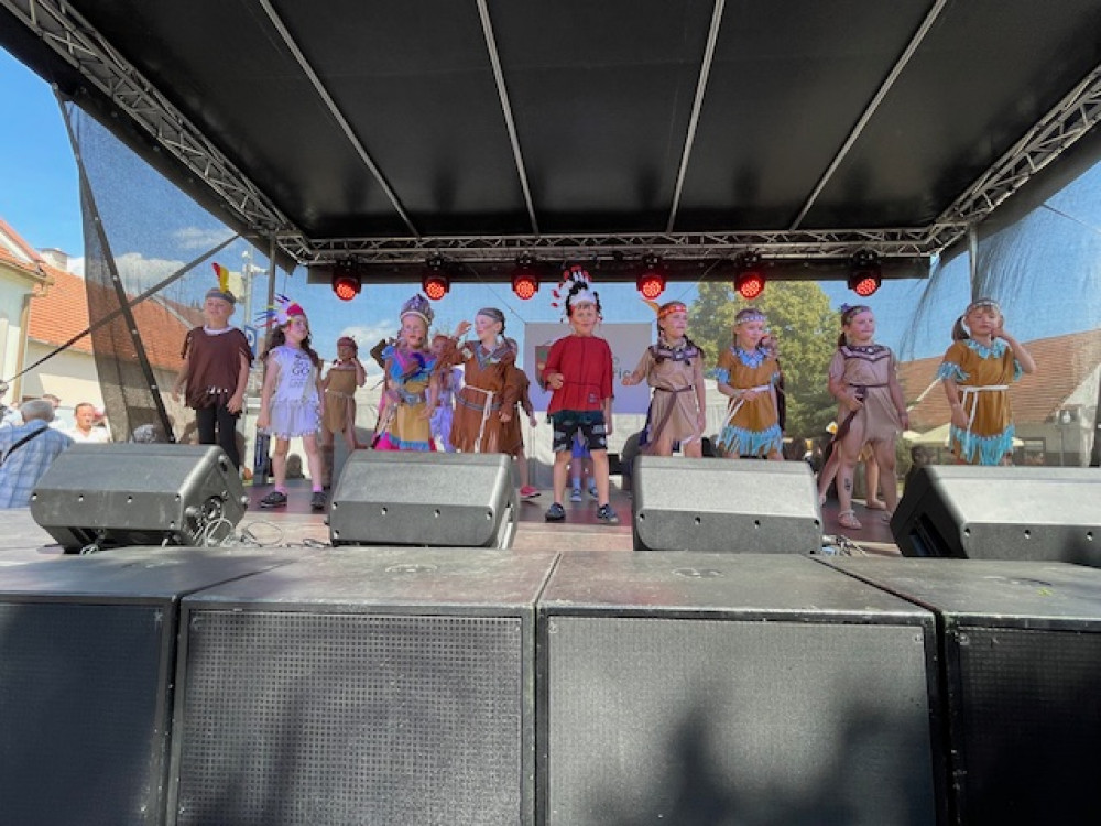 Jako indiáni vystoupili prvňáčci z 1. A a 1. C na modřických oslavách. Pár týdnů pilně nacvičovali, vystoupení se jim moc povedlo a sklidili zaslouženě velký potlesk.