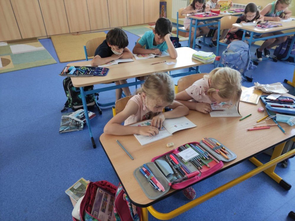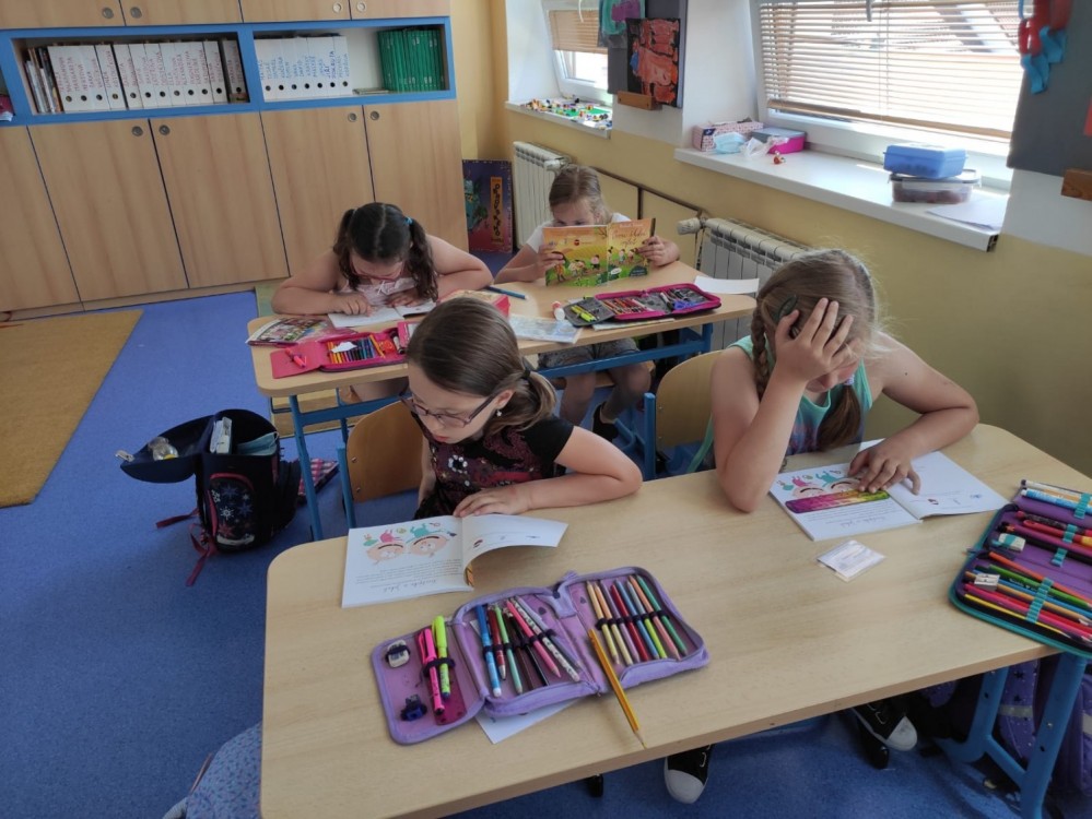 Ve spolupráci s Městskou knihovnou Modřice jsme se letos výjimečně ve třídě pasovali na čtenáře. Děti jsou šikovné a novou knížku na prázdniny si za jejich snahu a píli ve školním roce určitě zasloužily. Těší se, že ji o prázdninách celou přečtou a stanou se z nich zkušení čtenáři připraveni na druhou třídu. Zároveň s knížkou si přihlášené děti odnesly i průkazku do knihovny. Nové knížky a zkušenosti mohou v létě objevovat i tam.
