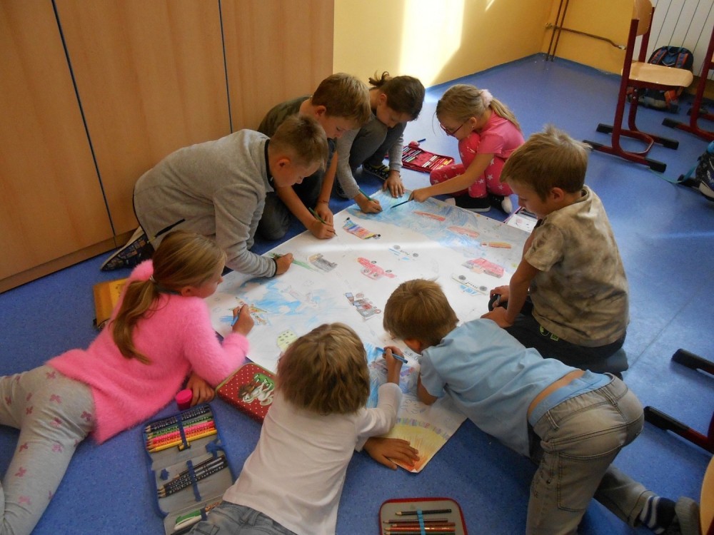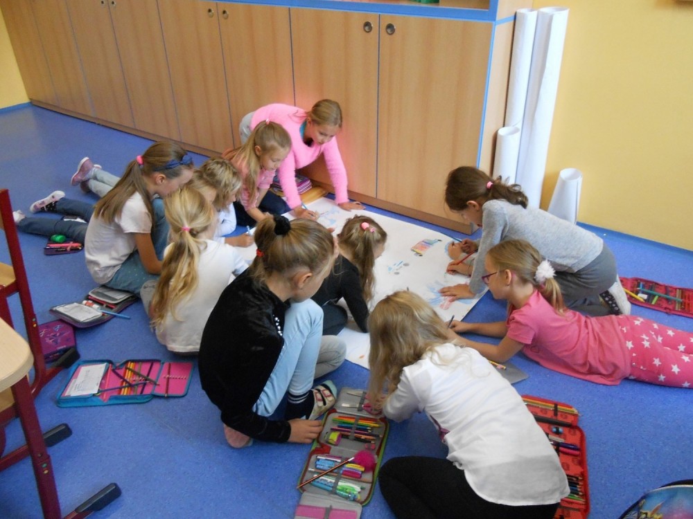 Nejdříve jsme si ve třídě udělali výstavku suvenýrů z dovolené a našich prázdninových deníků.Také jsme si přečetli úryvky z prázdninových deníků. Pak jsme si povídali, co všechno se nám při cestování líbilo a nakonec jsme společně vytvořili plakát s dopravními prostředky a pozdravy v různých jazycích. Bylo to moc zajímavé dopoledne a všichni jsme pracovali naplno.