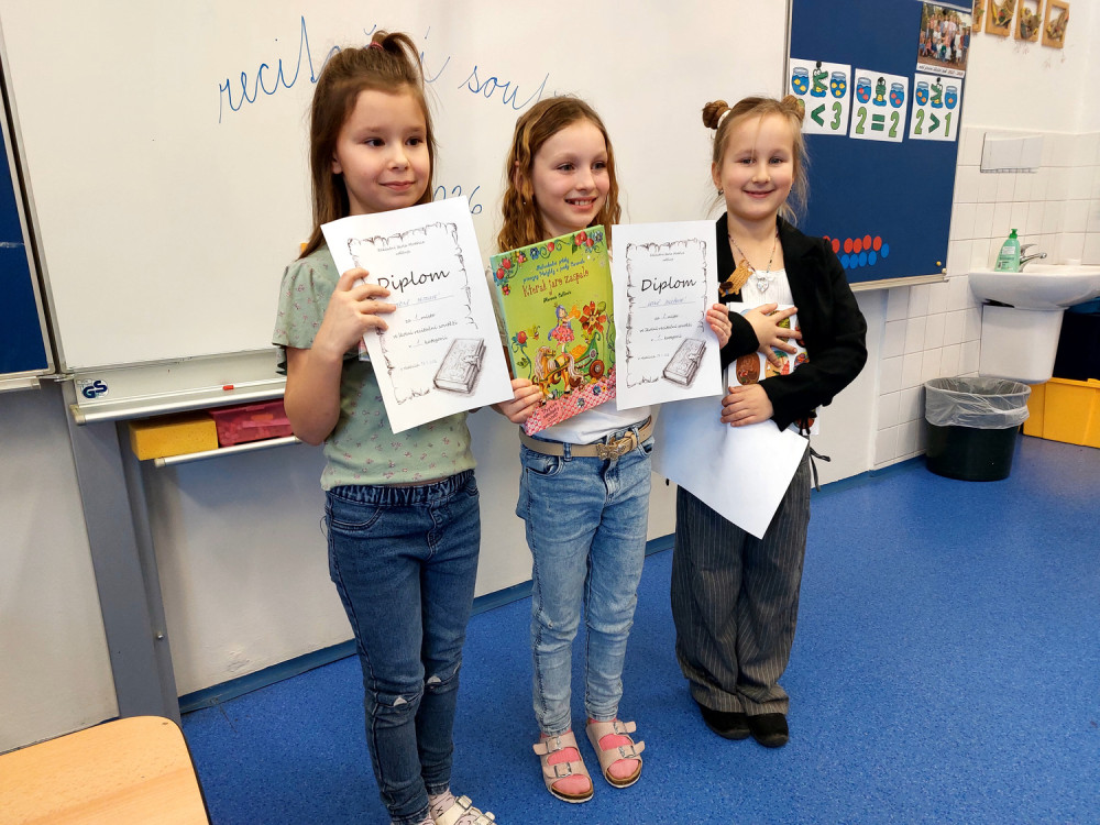 Naše Káťa opět obsadila 1. místo ve školním kole recitační soutěže, tentokrát v kategorii 2. a 3. ročník. Aby obstála v silné konkurenci starších a zkušenějších třeťáků, připravila si velice náročnou báseň Na hrady od Miloše Kratochvíla. V březnu nás reprezentovala v oblastním kole recitátorů v Tišnově.