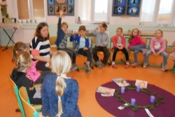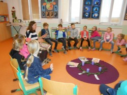 V pondělí hned po první adventní neděli jsme si ve výukovém programu "Vánoce" povídali s paní Klangovou o všem, co souvisí s adventním časem a poslechli jsme si také příběhy z historie o Mikulášovi, Barboře a Lucii a o tradicích, které se udržují ve spojení s nimi až do dneška. Vytvořili jsme si symbolický adventní věnec.