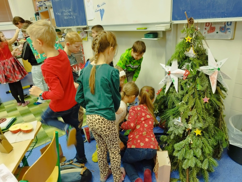 Vánoce ve 2.A se slavnostní náladou začaly už zdobením stromečku. Většinu příprav zvládly děti samy. Přímo před Vánocemi se pod pod stromečkem objevily nečekaně dárky. Než jsme se k nim dostali, prožili jsme si některé z vánočních zvyků - krájení jablka, odlévání z vosku. Nechyběla ani adventní přání. Po radosti s dárky jsme se vydali obdarovat i zvířátka. Zelenina, ovoce a semínka jim jistě přijdou vhod. Plni očekávání odešli druháci domů prožít ty pravé rodinné Vánoce.