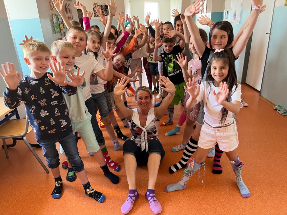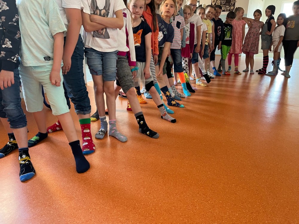 Na dnešní den pro nás školní parlament připravil akci Ponožkový den. Šlo o to, aby každý přišel do školy v co nejbláznivějších ponožkách. Zapojili jsme se skoro všichni, v pracovních činnostech jsme si dokonce sami cool crazy ponožky navrhli. Děkujeme školnímu parlamentu za nápad!
