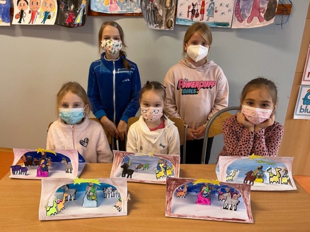Dnes jsme si po první hodině krásně "zatvořili": v předvánočním období jsme vyrobili sovičku z šišky, sovičku jako pokladničku třeba na bonbony z ruličky od toaletního papíru a nakonec i krásný betlém. A protože nám ještě zbylo trochu času, otevřeli jsme další políčko v našem třídním adventním kalendáři a přečetli si nové pohádky. Den utekl jako voda, výrobky se všem moc povedly!