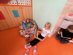 Protože už jsme šikovní čtenáři, zahájili jsme čtení ve čtenářské dílně. Každý si vybral knížku, našel si místečko a pustil se do práce. Na 15 minut jsme zapomněli na okolní svět a ponořili se do světa pohádek, příběhů a fantazie.
